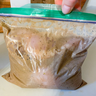 Place the bag in the fridge for at least 30 minutes or up to 2 hours. The yogurt in the marinade will work to tenderize the chicken and the balsamic and spices will flavor it.