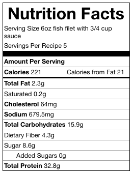 The spices, fresh bell peppers and onions all simmer together on the stove for a while before adding the fish to ensure each bite is delicious and packed with flavor. It's so good, we scraped up what remained of the sauce and saved it to serve with pasta the next day. We couldn't waste a drop!